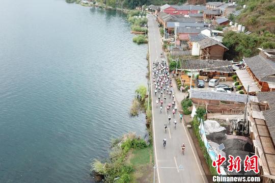 2018·环泸沽湖国际自行车公开赛16日上午在四川泸沽湖鸣枪开赛,图为比赛现场。 刘忠俊 摄