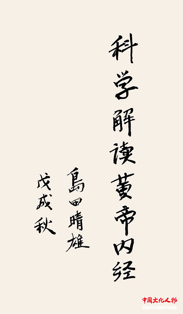 世界知名经济学家、日本首相府内阁顾问、首都大学理事长岛田晴雄教授为王寅题写“科学解读王帝内经”