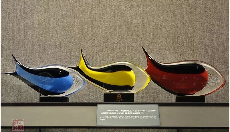 2006年7月,瑞典国王卡尔十六世·古斯塔夫赠给的鱼形水晶玻璃摆件。