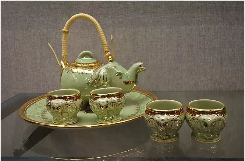 2006年10月,泰国赠给的象形青瓷茶具。