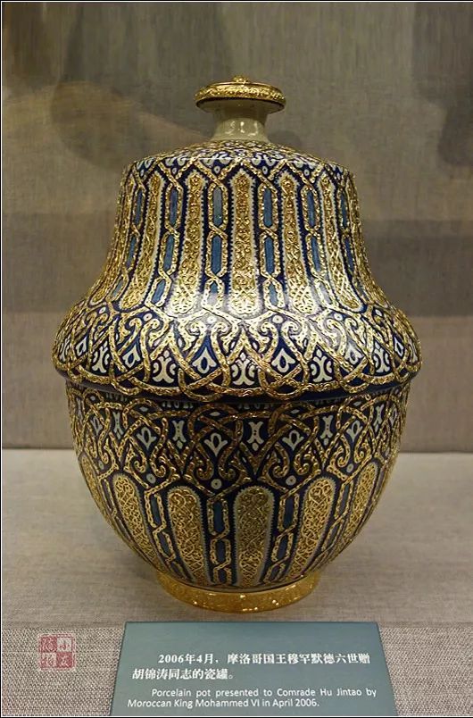 2006年4月,摩洛哥国王穆罕默德六世赠给的瓷罐。