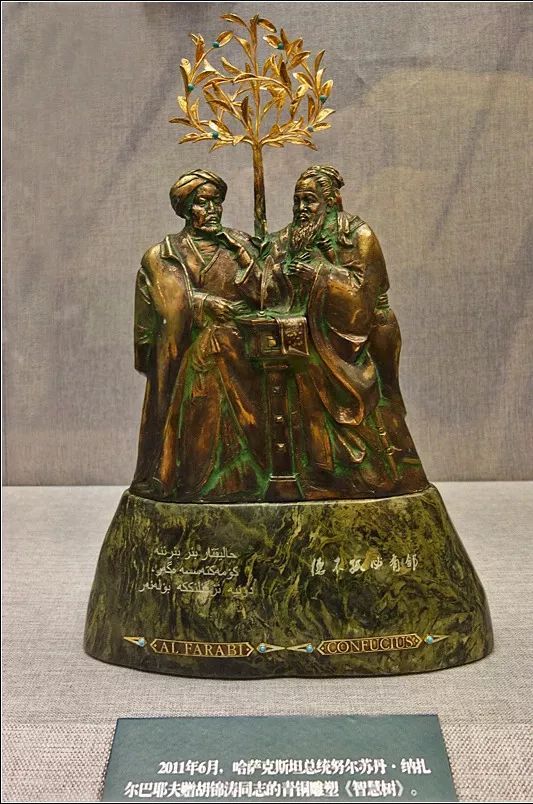 2011年6月,哈萨克斯坦赠给的青铜雕塑《智慧树》。智慧树下,两位东西方先哲的杰出代表中国的圣人孔子与哈萨克斯坦的草原之子阿里·法拉比正在对话,以此象征哈萨克斯坦人民和中国人民在历史和精神价值方面的相似性。下部为碧玉底座,上面分别镌刻着孔子的名言“德不孤,必有邻”及阿里·法拉比的名言:“如果人们能够互帮互助,世界将会繁荣盛。”