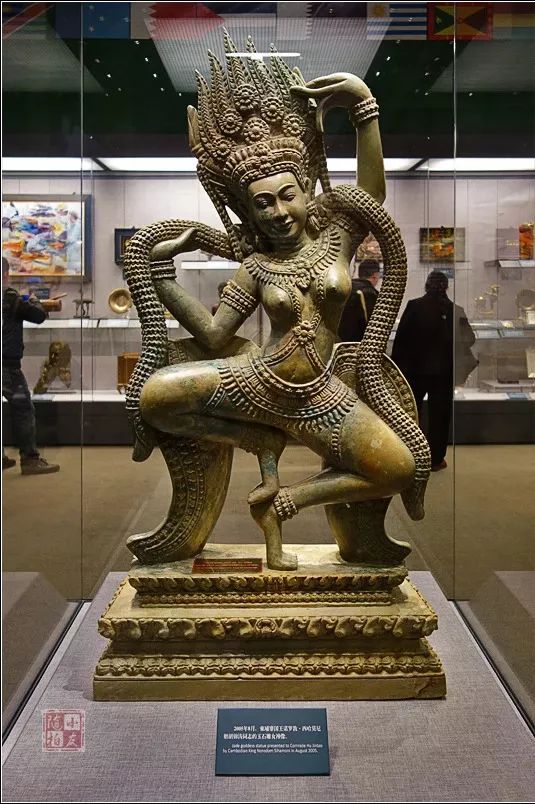 2005年8月,柬埔寨国王诺罗敦·西哈莫尼赠的玉石雕女神像。