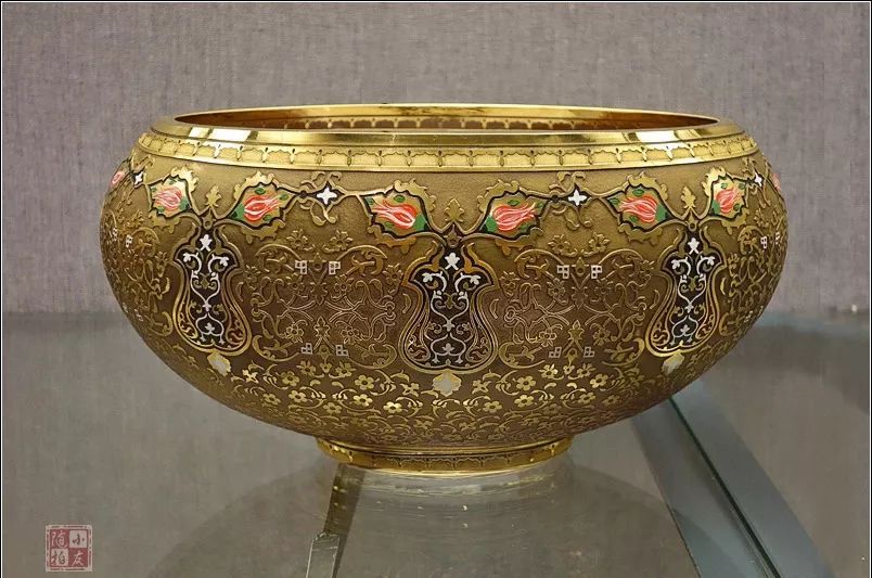 2010年11月,土耳其外长艾哈迈德达乌特奥卢赠送的描金彩绘玻璃钵。