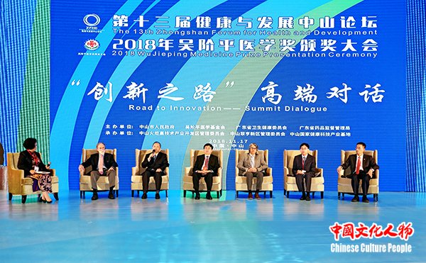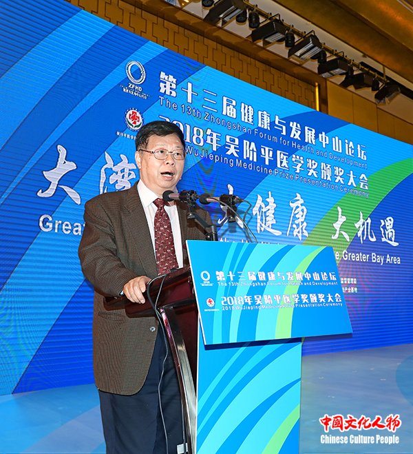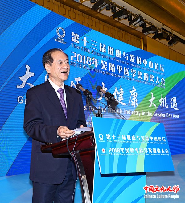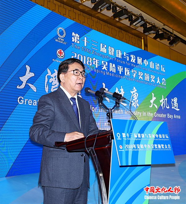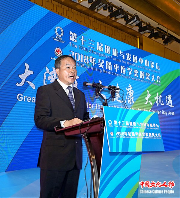 中国文化人物(主编 王保胜)11月16日至18日,由中山市人民政府、吴阶平医学基金会、广东省卫生健康委员会和广东省药品监督管理局共同主办,中山火炬开发区、翠亨新区和中山国家健康基地共同承办的“第十三届健康与发展中山论坛、2018年吴阶平医学奖颁奖大会”广东省中山市举行。第十二届全国政协副主席、吴阶平医学奖评审委员会主席、中国科学院院士韩启德,中国科学院院长、党组书记、发展中国家科学院院长、中国科学院院士白春礼,中山市委副书记、代市长危伟汉,中国医学装备协会理事长、健康与发展中山论坛荣誉顾问、原卫生部副部长朱庆生,健康与发展中山论坛秘书长、原国家食品药品监督管理局副局长任德权,2003年诺贝尔化学奖获得者彼得·阿格雷(Peter Agre),吴阶平医学基金会理事长晓萌,中国科学院院士、结构生物学专家、西湖大学校长施一公,中国工程院院士、肾病专家陈香美,中国科学院院士、神经外科专家赵继宗,中国科学院院士、中国科协副主席袁亚湘,中国工程院院士、肿瘤治疗学专家郝希山,中国科学院院士、病理学专家卞修武,中国科学院广州分院院长吴创之,国家卫生健康委员会医政医管局副局长周长强,广东省卫生健康委员会巡视员、副主任刘冠贤,中山市政协主席丘树宏,中山市人大常委会常务副主任唐颖,广东省政协办公厅副巡视员吕远球,中国可持续发展研究会名誉理事长、科技部社会发展司原司长甘师俊,吴阶平医学奖评审委员会委员、原卫生部科技司司长肖梓仁,科技部火炬中心原副主任安道昌,第十三届全国政协委员、香港食物及卫生局原局长、中国香港医疗卫生学会会长高永文,广东省药品监督管理局党组成员苏盛锋,中山市委副书记陈文锋,澳门科技大学校长刘良,广东药科大学校长郭姣,世界银行健康、营养、人口全球实践部卫生服务全球业务主任米奇·乔普拉(Mickey Chopra),中山市委常委、火炬开发区党工委书记、翠亨新区党工委书记侯奕斌,中山市政府副市长徐小莉,中山市政府副市长袁永康,中山市政协副主席、市委秘书长李长春,中山市政府秘书长李俊等领导嘉宾,以及来自海内外的医疗卫生和健康产业领域的专家学者、行业协会负责人出席开幕式。