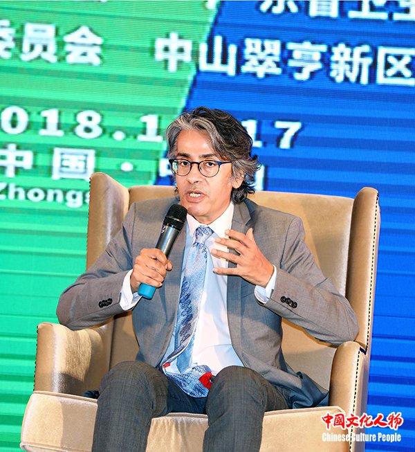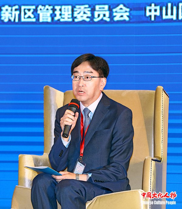 中山市委常委、火炬开发区党工委书记、翠亨新区党工委书记侯奕斌在“创新之路”高端对话环节介绍中山健康城市建设等方面的现状及发展前景