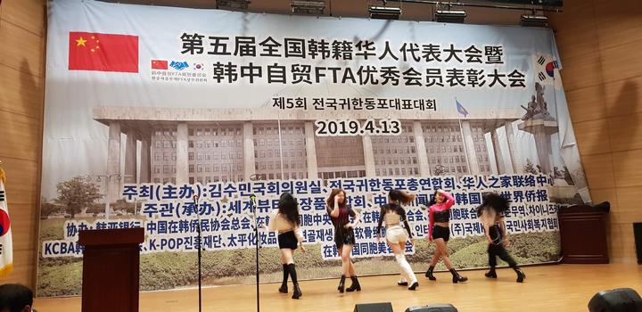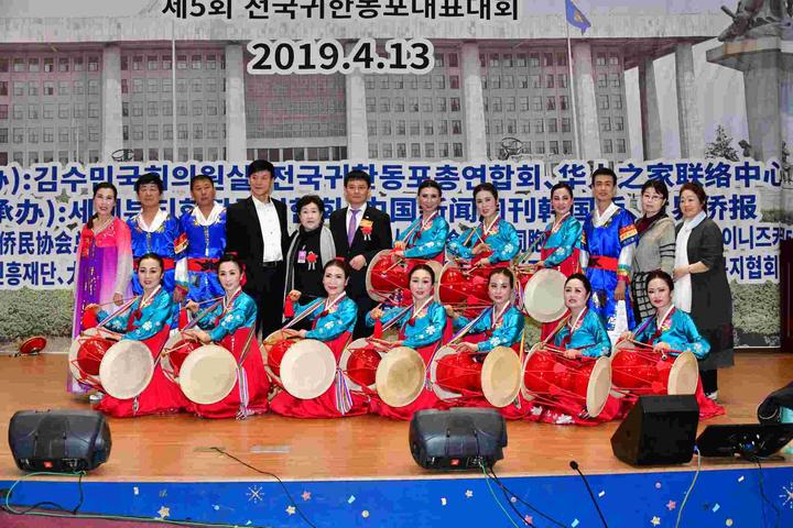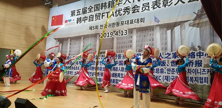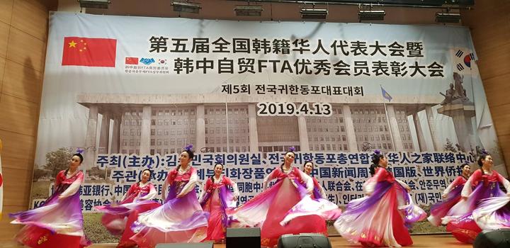 艺术团演员们以歌舞的形式前来庆祝第五届全国韩籍华人代表大会的顺利召开。