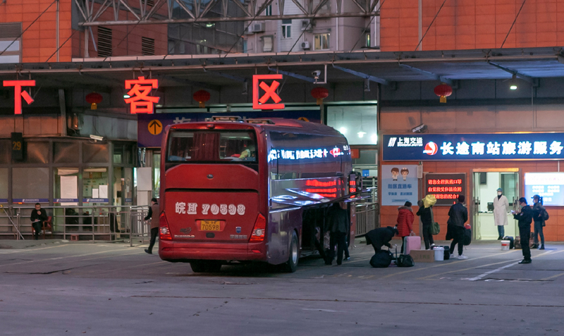 3月15日,在上海长途客运南站,旅客抵达后下车。