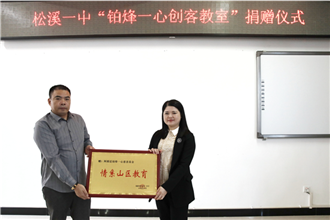 10月19日上午,“铂烽一心创客教室”揭牌仪式在松溪一中举行,致公党福建省委专职副主委吴棉国、阿根廷铂烽一心慈善基金会荣誉主席陈世金、南平市委统战部常务副部长董礼义、松溪县委常委、统战部部长周建芳及学校师生代表等参加活动。