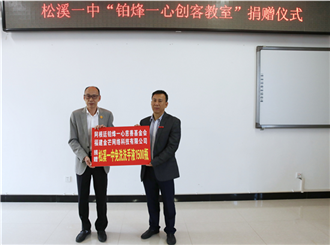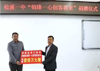 活动中,阿根廷洪门协会和铂烽一心慈善基金会向松溪一中捐赠“创客教室”项目资金十万元,铂烽一心慈善基金会和福建金芒网络科技有限公司向松溪一中捐赠1500瓶洗手液。周建芳向“铂烽一心慈善基金会”颁发荣誉证书,对海外社团在创新教育、创新型人才培养给予松溪县大力支持表示衷心的感谢。