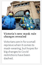 然而,澳洲医学协会(Australian Medical Association)维州分会主席麦克雷(Roderick McRae)警告说,他认为在维州实施办公室口罩佩戴废除令还为时过早。他对2AW表示:“我们知道,许多人感染这种病毒后完全没有症状,但他们却正在传播这种病毒。他们不知道自己得了这种病,你也不知道他们得了这种病,如果你不能远离他们,那么就有传播的风险。”