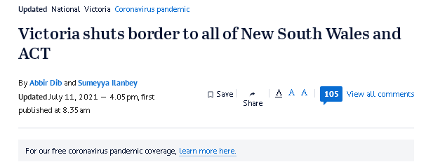 随着悉尼疫情的暴发,维州已从上周日(11日)晚上11点59分关闭对新州和首领地的所有边境。维州州长安德鲁(Daniel Andrews)表示将向新州提供应对疫情所需的任何支持或人员,同时也警告维州人要“尽快”回家。