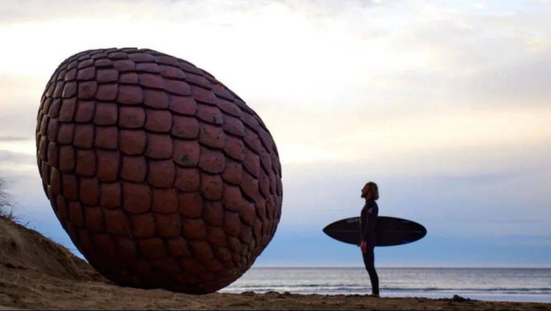 据澳洲新闻集团报道,周四,Anglesea海滩的居民看到了这一超现实主义景观,很多人想知道这个巨大的蛋出现在该镇最受欢迎的海滩上是干什么用的。