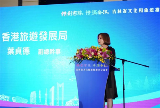 香港旅游发展局副总干事叶贞德在致辞中表示,吉林拥有雄浑壮美的江河山川、古朴淳厚的民俗风情与优美和谐的生态环境,净月潭、长白山天池,以及自然奇观----吉林雾凇令每一位游客难以忘怀。四季分明的吉林,其最优质的冰雪资源、最好的滑雪设施,一直令滑雪爱好者神往。这些年省文化和旅游厅不断创新,打造出“清爽吉林,22℃的夏天”这一旅游品牌,形象勾勒出盛夏时节吉林省的旅游魅力。