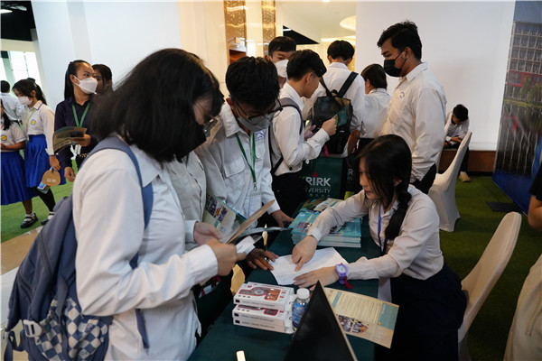 柬埔寨检察部国务秘书昌速塔列对2023中国东盟教育展首次举办表示祝贺和支持,此次的展会恰逢柬埔寨2023-2024新学年的开学日子,因此,此次展会也吸引了大量柬埔寨学生前来观展。