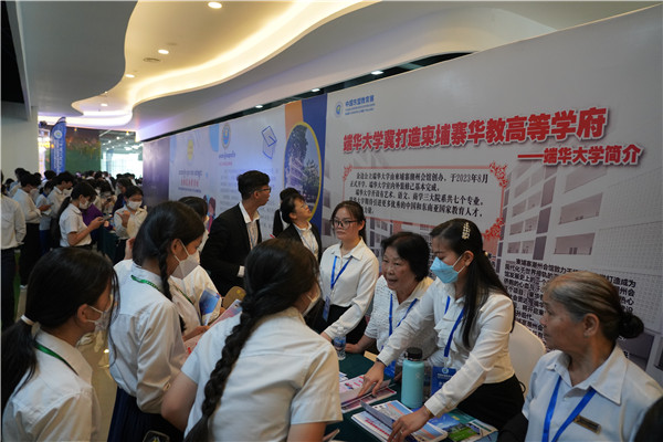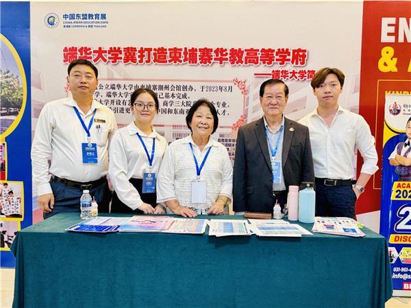 由柬埔寨中国教育交流协会与中国—东盟国际教育交流协会联合举办的2023中国东盟教育展活动于1日上午在金边奥林匹亚商城举行开幕式。柬埔寨检察部国务秘书昌速塔列,2023中国东盟教育展中国大学代表团团长、广东省教育厅交流合作处李金俊处长,柬华理事总会常务副会长郑棉发勋爵,中国商会会长林士强,柬埔寨中国港澳侨商总会、柬埔寨香港商会会长黄瑞华女士等众多嘉宾及多所学校师生参加活动。