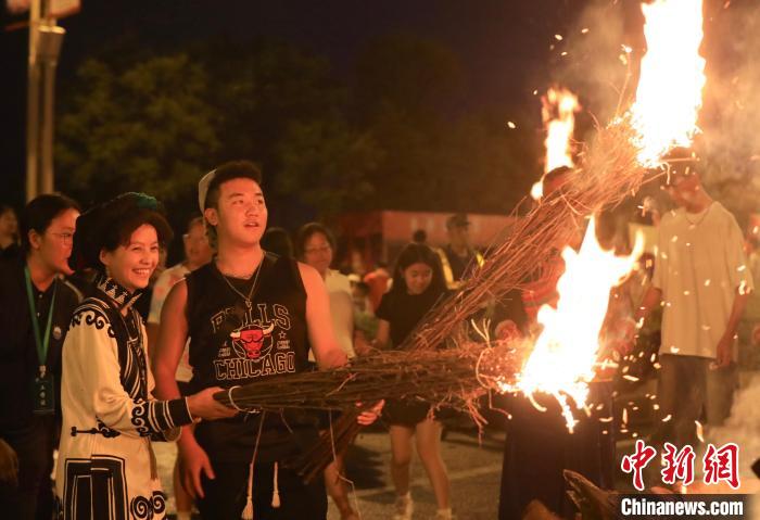 7月29日晚,“激情火把节 最炫民族风”2024年凉山彝族火把节的“重头戏”火把狂欢夜在四川省西昌市举行,上万名当地民众和游客点燃手中的火把,载歌载舞欢庆彝族最重要的节日之一——火把节,沉浸式体验火把互动的激情与热烈。图为游客和当地民众点起火把。中新社记者 王磊 摄