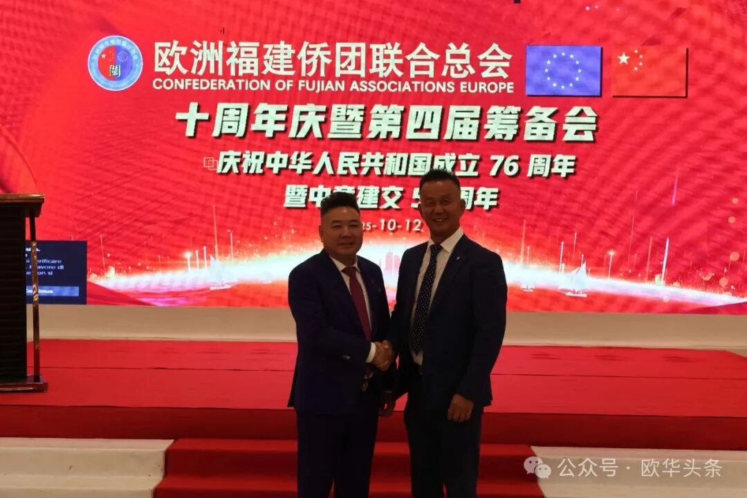 在庆祝中华人民共和国成立76周年,中意建交55周年之际,2025年10月12日晚,华灯璀璨。欧洲福建侨团联合总会十周年庆典暨第四届筹备会在意大利普拉托聚福酒店隆重举行。来自欧洲十多个国家及意大利各地区的上百位侨领和嘉宾欢聚一堂,共同见证这一具有里程碑意义的盛会。 中国驻佛罗伦萨总领馆领侨处主任周莅淼、领事徐静媛莅临晚会现场。欧洲福建侨团联合总会第四届候任轮值主席胡建兵、首届轮值主席陈云斌、旅意福建华侨华人同乡总会会长郑文华,以及来自欧洲多国的侨团代表共同回顾欧福联十年发展历程,展望未来宏伟蓝图。 庆典在庄严的中华人民共和国国歌声中拉开帷幕,全场嘉宾通过《欧福联十周年纪念视频》,回顾十年风雨同舟、携手奋进的光辉历程,致敬闽籍侨胞在欧洲的奋斗足迹与团结精神。 胡建兵主席指出,十年的成长凝聚了每一位侨胞的心血和智慧,大家的支持与付出让欧福联成为海外福建人坚实的精神家园和温暖的港湾。展望未来,欧福联将以新的姿态继续发挥“桥梁纽带”的作用,搭建更开放、更务实的合作平台,凝聚侨心、汇聚侨力,服务社会、回馈桑梓,为侨胞提供更多的学习、交流与发展的机会。他强调,要进一步加强侨团间的沟通与协作,推动资源共享、信息互通,培养优秀华侨青年,让更多年轻力量参与侨务工作,传承侨团精神。欧福联将努力打造一个更加全面、温暖、具有凝聚力的侨胞之家,让每一位侨胞都能感受到家的温暖与力量。 胡建兵主席表示,十周年是新的起点,欧福联将继续坚持开放、务实、创新的理念,携手各侨团,共同谱写“侨连五洲、福泽四海”的新篇章。他最后衷心感谢大家的信任,推选他当选第四届轮值主席,并承诺将不负重托,带领欧福联迈向更加辉煌的未来,为广大侨胞和家乡建设贡献更多力量。 ▲欧洲福建侨团联合总会首届轮值主席陈云斌致辞。 陈云斌主席表示,十年来,欧福联在历届主席团和全体会员的共同努力下,团结旅欧福建侨胞,架设了中欧交流的桥梁,积极维护侨胞权益,热心公益回馈社会,展现了福建侨胞良好形象。展望未来,陈云斌指出,新一届总会将面临新的机遇与挑战,主席团成员应紧密协作,强化服务,推动创新发展,弘扬闽商精神,深化与各侨团及祖国相关部门的联系,关注乡亲需求,特别是在事业发展、子女教育和养老医疗等方面。他强调,要加强与年轻一代侨胞的互动,讲好侨乡故事,传承中华优秀文化和闽商精神,建设可信赖、温暖的侨胞之家。 陈云斌主席希望大家继续关心、支持和参与总会工作,共同把欧福联建设成为促进中欧友好交流的重要力量,并祝会议圆满成功,祝各位乡亲健康幸福。 ▲旅意福建华侨华人同乡总会会长郑文华致辞。 郑文华会长表示,大家齐聚普拉托,共同庆祝欧福联十周年。他代表旅意福建华侨华人同乡总会向欧福联致以热烈祝贺,并向历届领导班子和全体会员多年默默奉献表示崇高敬意。郑文华指出,欧福联自成立以来,始终秉持“团结互助、爱国爱乡”的宗旨,凝聚欧洲各国福建籍侨胞力量,积极推动侨界交流合作,为中欧民间友好和福建侨务事业发展作出了卓越贡献。他介绍,旅意福建华侨华人同乡总会自1999年成立以来,一直是福建省对外宣传侨务政策的重要窗口,会员与家乡保持密切联系,积极参与家乡建设,在服装、餐饮、机械、皮革等多个行业创业发展,并与当地商界开展合作,为侨胞群体创造了良好发展环境。 郑文华会长特别提到,去年11月,总会荣获“侨社之星”殊荣,这是对旅意福建侨胞多年团结奋斗、热心公益、情系桑梓的高度肯定。他衷心感谢中国驻佛罗伦萨总领事馆、兄弟侨团及家乡侨务部门的支持与指导,并表示未来将继续团结奋进、携手同行,增强侨社凝聚力,讲好福建故事,弘扬闽商精神,为中意友好和侨界发展贡献更大力量。最后,他预祝欧洲福建侨团联合总会十周年庆典圆满成功,并祝各位身体健康、事业兴旺、阖家幸福。 ▲驻佛罗伦萨总领馆领侨处主任周莅淼发表讲话。 周莅淼主任向欧福联十周年表示热烈祝贺,并高度评价广大旅欧侨胞为促进中欧民间交流、推动福建与欧洲地方合作所作出的积极贡献。他希望欧福联继续发挥桥梁纽带作用,团结侨界、服务侨胞,为中意关系和福建侨务事业发展贡献新的力量。 ▲旅意福建华侨华人同乡总会文艺部副部长陈丽主持当天的庆典大会。 ▲在庆典仪式上,北京巨微艺术研究院院长、国家一级美术师孙磊先生向欧福联赠送题为“瑞气祥云”的书画作品,寓意欧福联立德立业、传承精神、行稳致远。 庆典活动圆满礼成,在《爱拼才会赢》的熟悉旋律中落下帷幕。与会嘉宾纷纷合影留念,共同记录这一属于全体欧洲闽籍侨胞的荣耀时刻。在热烈欢快的气氛中,全体嘉宾共同举杯庆祝。祝愿欧洲福建侨团联合总会十周年生日快乐,祝愿中意两国友谊长存,福建侨胞事业蒸蒸日上,祖国繁荣昌盛、国泰民安。