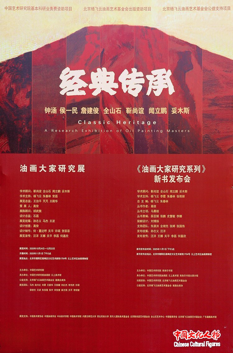 《经典传承·油画大家研究系列》丛书的出版得益于中国艺术研究院和北京杨飞云油画艺术基金会专项资金资助。本次展览也获得北京杨飞云油画艺术基金会和港澳台美协的公益支持。作为成果结项与汇报的收官环节,展览和七卷新书综合呈现新中国培养的七位油画大家,在中国精神、时代风貌与语言融合等方面的传承、探索与深耕。