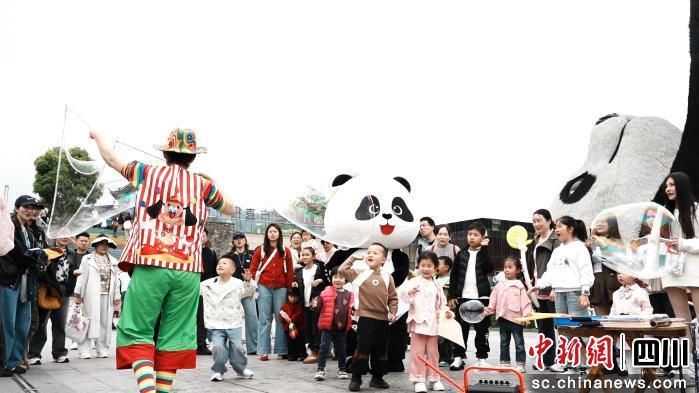 除了拍照打卡,现场还有不少适合亲子家庭的互动内容。非遗手艺人现场制作“安逸熊猫”造型糖画,一勺糖在手中翻转,不一会儿就勾出熊猫轮廓,引得围观游客连连举起手机。另一边,魔术表演、泡泡秀、趣味气球轮番登场,小朋友追着泡泡跑,大人忙着拍照记录,整个广场都被轻松欢乐的氛围包围。扫码关注官方账号后,游客还可免费领取糖画或趣味气球,为春游再添一分小乐趣。“平时孩子就喜欢熊猫,这次活动有‘安逸熊猫’带着玩,把路线和玩法都串起来了,感觉很省心。”现场游客吴先生说。
