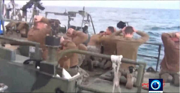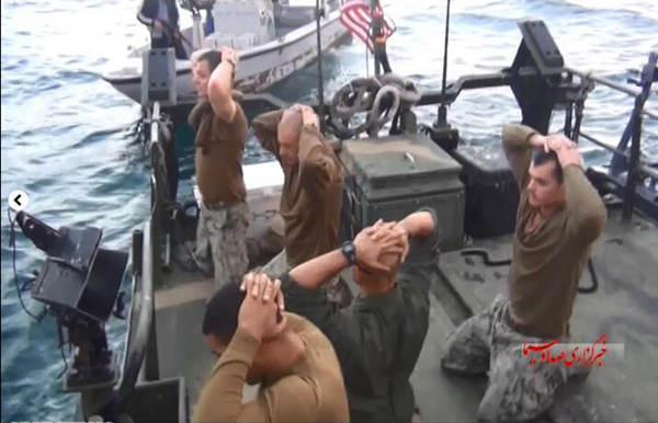 原标题:伊朗公布扣押美军巡逻艇时画面:美国大兵跪地抱头