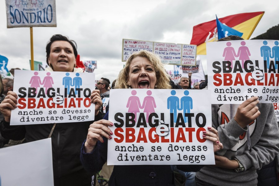 当地时间2016年1月31日,意大利罗马,成千上万群众举行“家庭日”集会,反对同性婚姻和同性恋收养孩子。