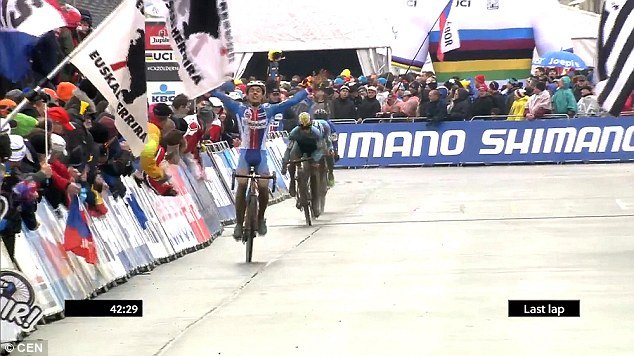 据英国《每日邮报》2月1日报道,近日,在比利时进行的世界自行车场地锦标赛上,捷克自行车车手阿达玛(Adama Toupalik)在倒数第二圈时误认为已经达到终点,便放缓车速挥臂欢呼,结果最终与冠军失之交臂。