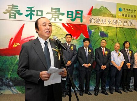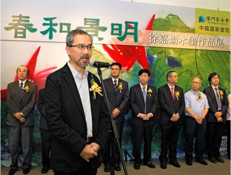 澳门教科文中心致力于教育、科学和文化艺术领域的合作与交流工作,“春和景明——徐嘉炀水墨作品展”在此举办,吸引了港澳及内地艺术家的广泛关注,为合力推动中华民族博大精深的优秀传统文化走向世界作出了积极贡献 中新社发 王保胜 摄