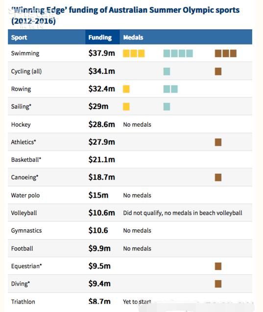 从2012年到2016年,澳大利亚为拳头项目游泳投入了最多资金,总计3790万。但最终10块奖牌(包括3金)的成绩在许多人看来是低于预期的。