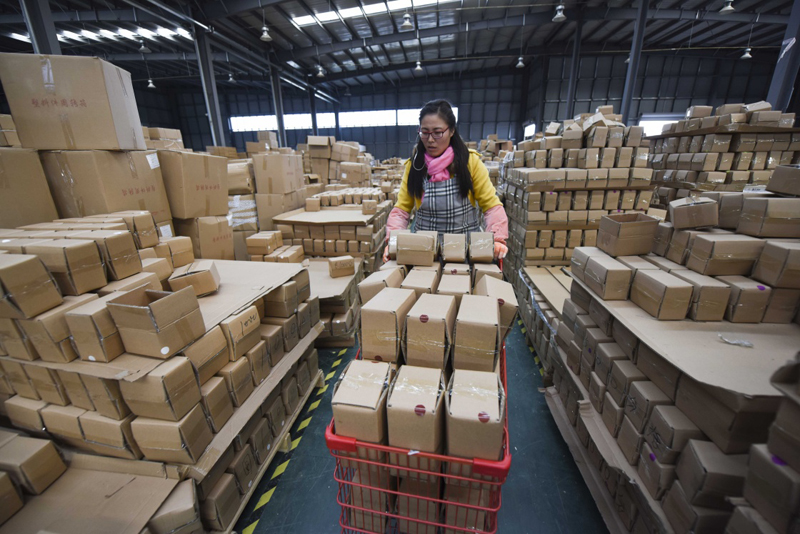 11月2日,江苏连云港赣榆海洋经济开发区一电商企业员工在为客户配货。“双十一”临近,电商和快递企业纷纷加派员工,提升仓储和配送能力,迎战即将到来的网络购物高峰。