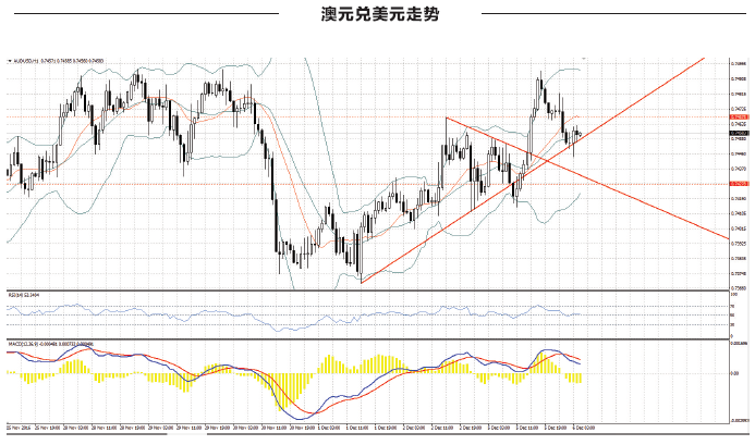 美元利率仍是左右澳元表现的重要因素。但与此同时,市场关注点本周也会转回澳洲,投资者等待澳储行决议和澳洲三季度GDP数据的表现。澳元/美元上周二(12月6日)亚盘震荡回落,澳储行决议影响颇为有限。