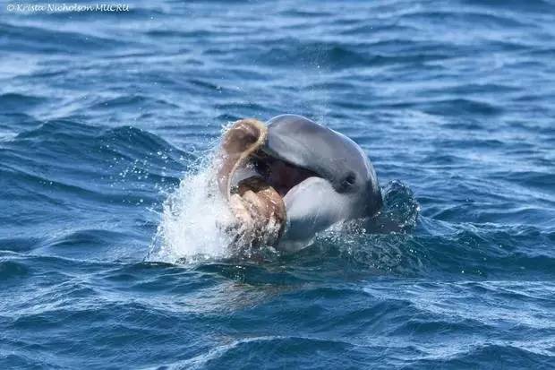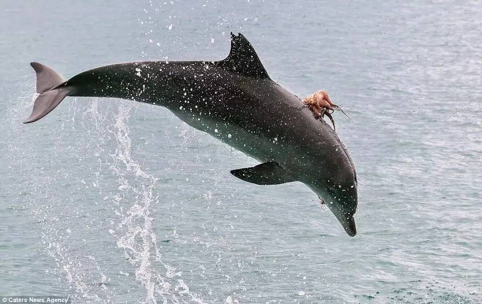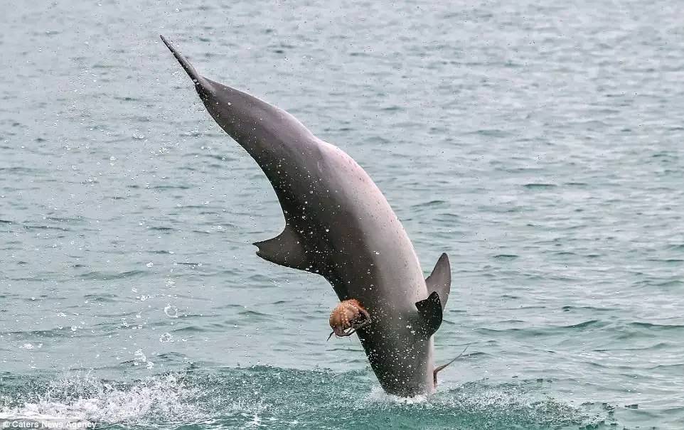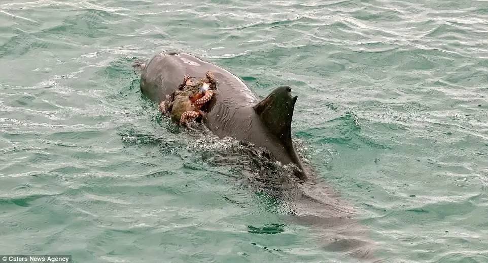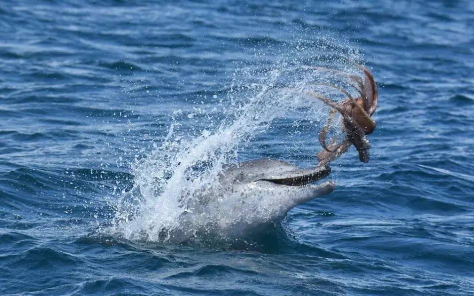 《海洋哺乳动物科学》杂志上月刊登文章介绍过海豚这种特殊的防御机制。.一旦章鱼被冲击力拍晕,触须失去力量,海豚便可安全享用美食。
