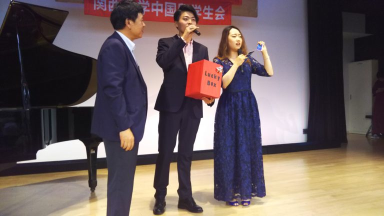 中国東方航空大阪支店張曜麟挨拶并向中奖者颁奖由東方航空大阪支店提供的回国往返机票。