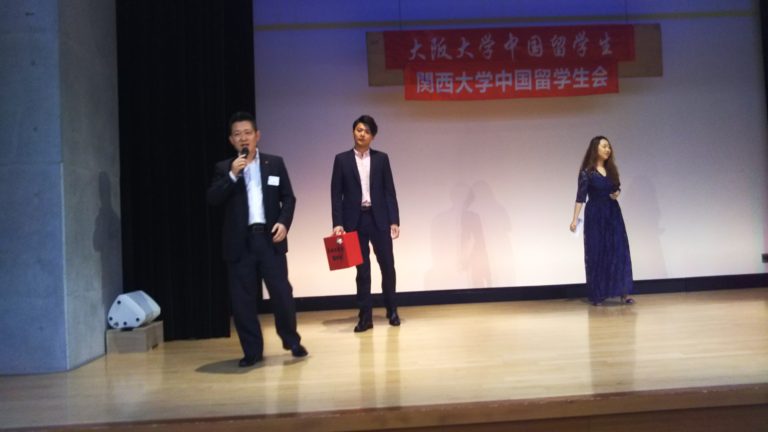 大阪大学、関西大学中国留学生学友会会長李志豪、冯程程致辞。