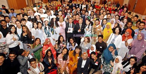 马智礼和与会国际学生一起合照。(马来西亚《中国报》)中国侨网10月23日电据马来西亚《中国报》报道,马来西亚教育部长马智礼呼吁,赴马留学的国际学生,应学习三大价