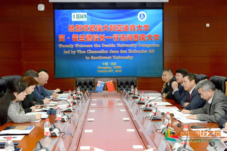 10月23日,澳大利亚迪肯大学校长简﹒霍兰德、国际事务副校长盖里﹒史密斯和副校长兼科学工程和建筑环境学部执行部长凯伦﹒汉普古德一行8人在澳大利亚教育管理集团