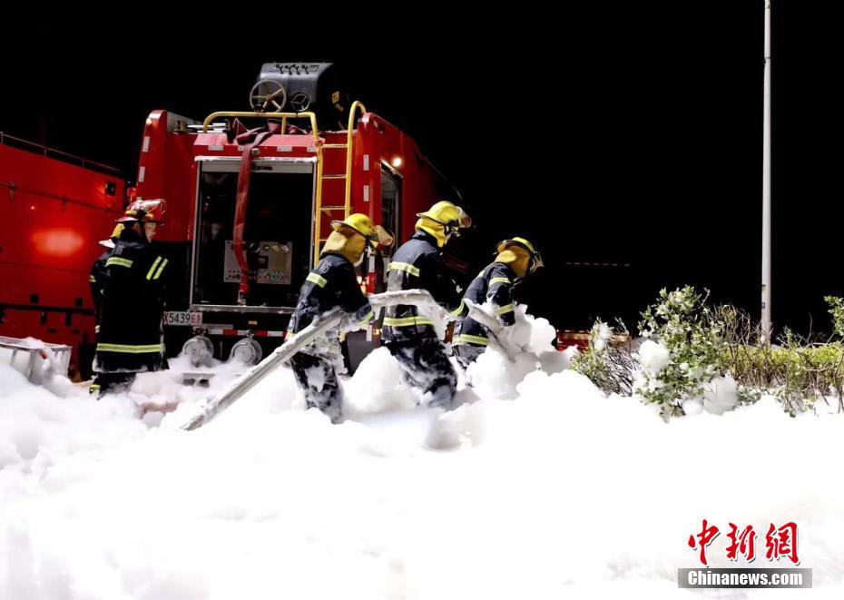 3月21日,响水化工厂爆炸发生后,常州市消防救援支队接到总队增援命令,于当晚10时派精干力量到达现场。经8小时持续扑救,将3个主着火罐的明火全部扑灭。周路摄