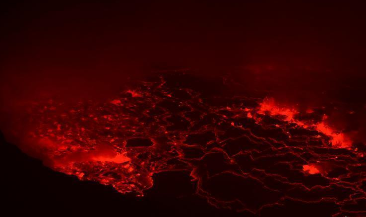 8月12日消息,近日刚果戈马的尼拉贡戈火山喷发,岩浆在火山口翻滚,点亮夜空。