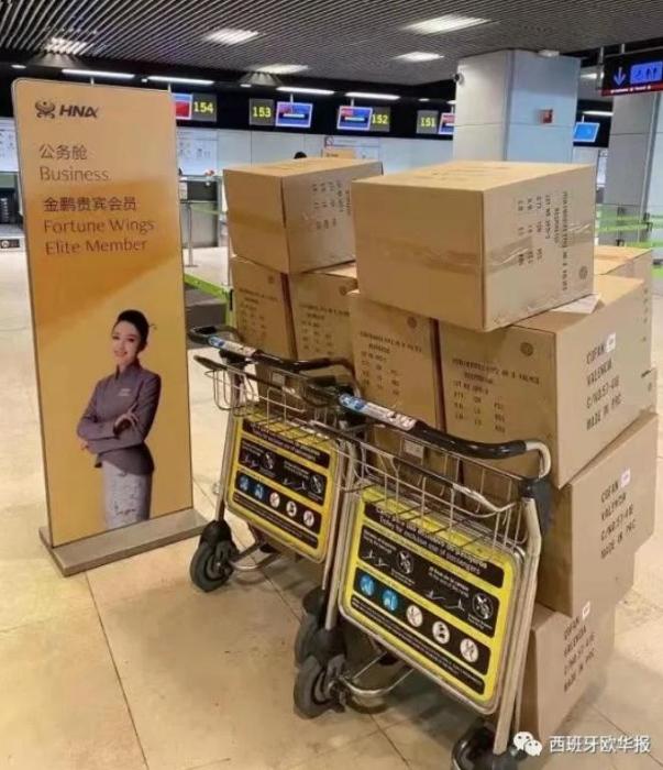 中新网1月28日电据《欧华报》报道,当地时间27日,由西班牙华侨华人华裔捐赠的首批近1万只口罩,登上海航HU7984航班,从马德里飞往深圳。运抵深圳后,会继续由当地负责