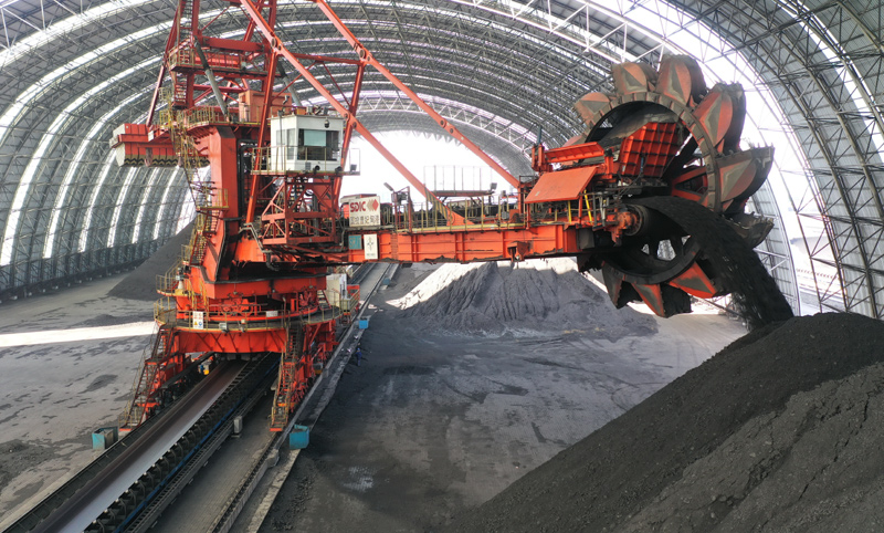 3月24日,工人在国投曹妃甸港煤仓操作机械设备卸煤(无人机照片)。近期,河北省唐山市曹妃甸区在做好防疫工作的同时,通过减轻企业财税负担、加大财政扶持、强化服务