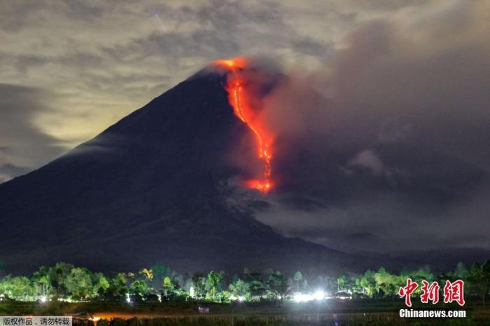 中新网1月17日电据美联社报道,当地时间16日,印度尼西亚的塞梅鲁火山(Semeru)喷发。根据印尼官方提供的数据,火山向天空喷出的灰烬和浓烟估计有5600米高。据报道,当