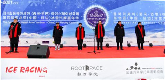 第四届东北亚(中国•延边)冰雪汽摩运动嘉年华暨东北亚(中国•延边)冰雪汽车拉力赛开幕式现场。董令辉摄1月23日,第四届东北亚(中国•延边)冰雪汽摩
