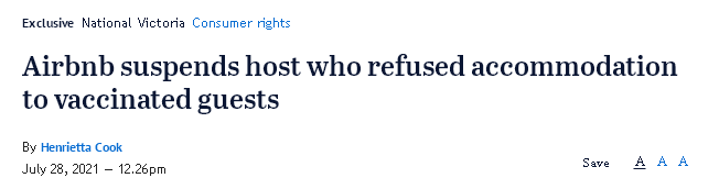 RubyHillsOrganicChookShed的一家民宿房东在Airbnb上表示,她的房子拒绝租给过去3周内曾接种过“试验性新冠病毒基因疗法疫苗”(experimentalC-19genetherapyvacci