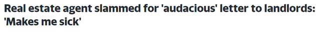 日前,来自悉尼北部富裕城区的一名房产经纪人,因其暗示房东收取租金过低的传单在社交媒体上遭受到了租户网友猛烈的抨击。据Yahoo网站报道称,在这张标题为“房东们