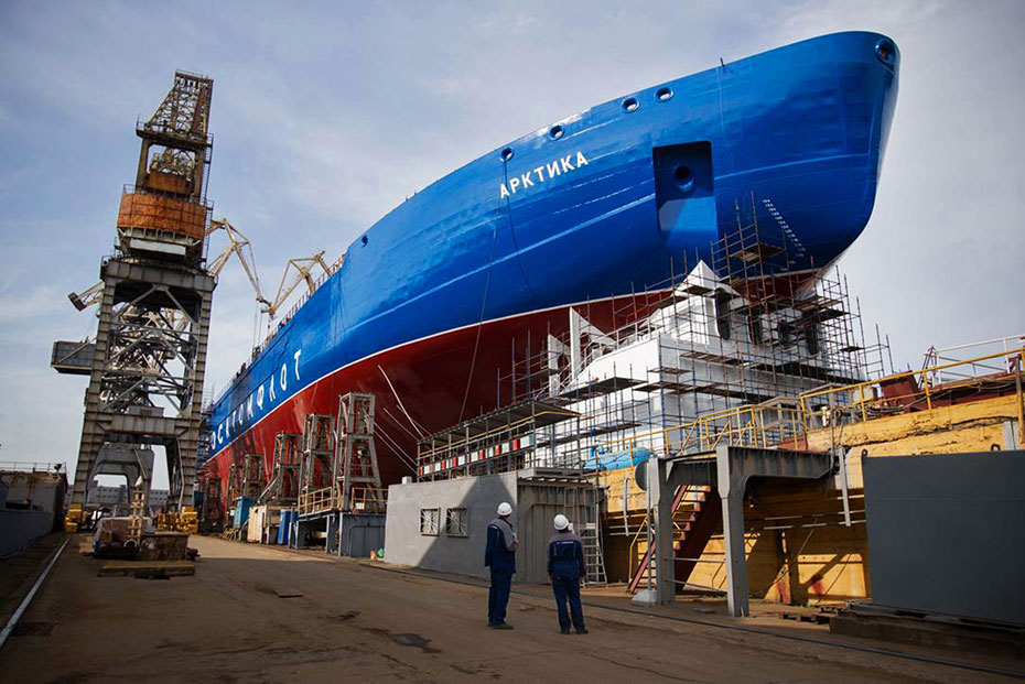 当地时间6月16日,俄“北极”号核动力破冰船在波罗的海造船厂下水据俄罗斯媒体报道,当地时间6月16日,俄波罗的海造船厂(隶属于联合造船集团)举行“北极”号核动力破