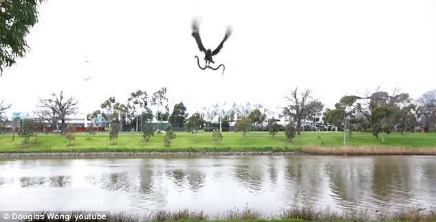 视频截图(《每日邮报》图片)墨尔本一个华裔家庭在公园烧烤,结果有老鹰飞来扔下一只活蛇,把人吓得够呛。整个过程都被拍摄了下来,上传到视频网站后引起争议。据《每