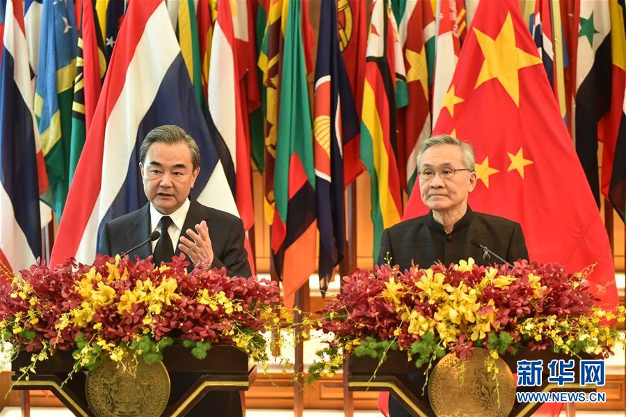 7月24日,在泰国曼谷,中国外交部长王毅(左)与泰国外交部长敦·巴穆威奈举行会谈后共同会见记者。新华社记者李芒茫摄