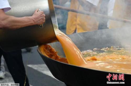 活动进行方式是使用一个超大盘子,在丢入25公斤的培根,50公升的油和数公斤的蔬菜后,大家齐力倒入共使用了近1万颗鸡蛋的蛋液,一起卖力挥动铲子,慢慢炒成炒蛋,再分给现场人士食用。