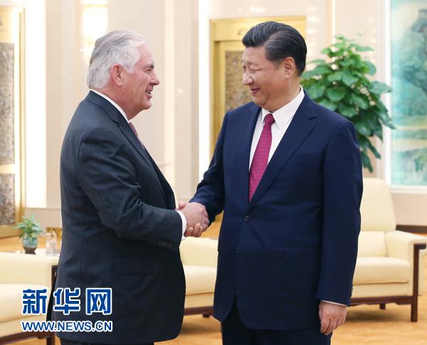 9月30日,国家主席习近平在北京人民大会堂会见美国国务卿蒂勒森。 新华社记者姚大伟摄