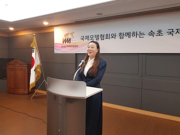 史灵芝院长出席韩国束草国际残疾人电影节开幕式后,又应邀出席新闻发布会并代表中国杏林医疗集团致辞讲话。